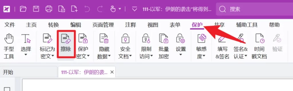其实我之前一直用福昕 PDF 处理 “内容擦除” 需求,它的操作也很便捷:在软件顶部找到【保护】模块,里面有专门的 “擦除工具”,选中需要隐藏的信息轻轻一擦,就能把内容直接抹除。